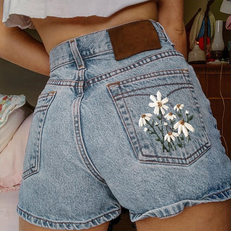 Floral Print Denim Shorts