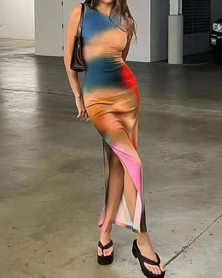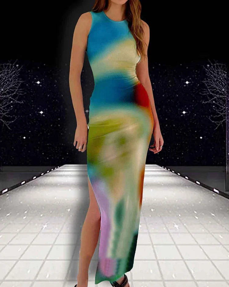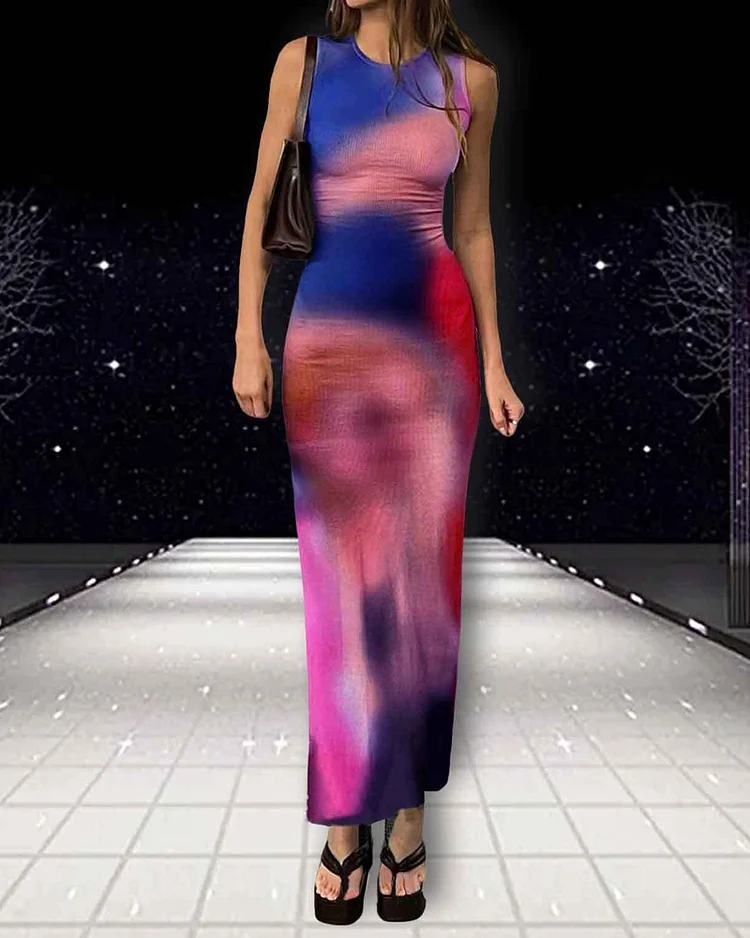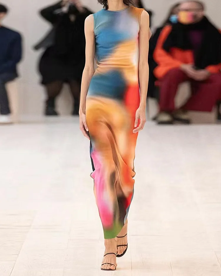 Chic Abstract Printed Slim Fit Sleeveless Dress